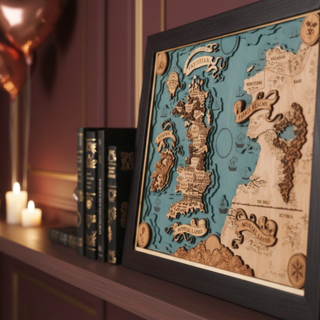 PRYTHIAN 3D WOOD MAP - for the Sarah J. Maas fan who fell hard for morally complex heroes and romances that are anything but innocent. A standout choice among book lover gifts for her and thoughtful gift ideas for readers.