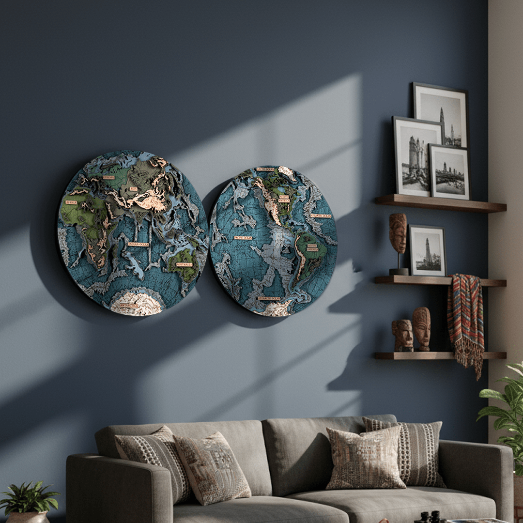Our Exclusive 3D Wood Map The World in Hemispheres