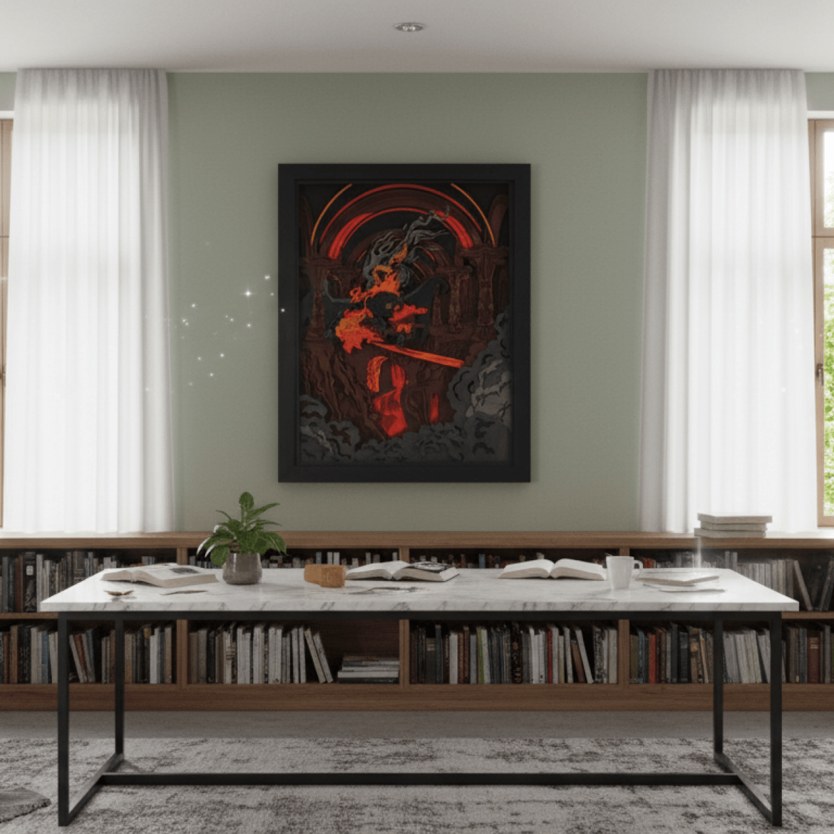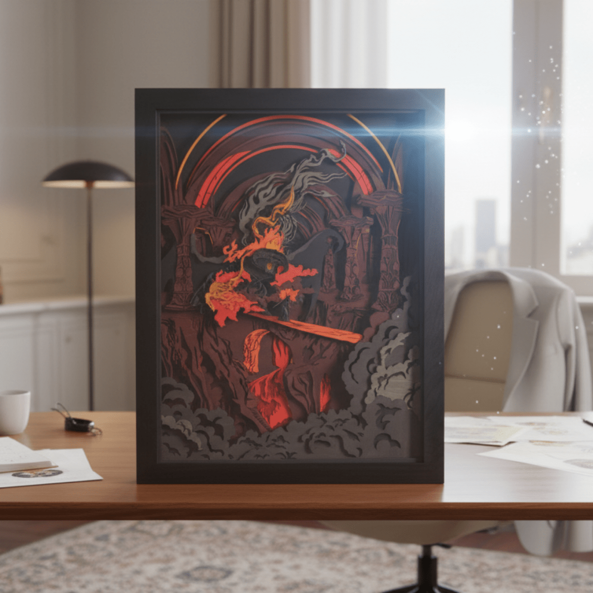 Witness one of the most iconic moments in fantasy history - Gandalf facing the Balrog in the depths of Moria. This handcrafted 3D wooden wall poster brings the legendary battle to life with dramatic layering, laser-cut precision, and an art style that feels straight out of Tolkien’s world.