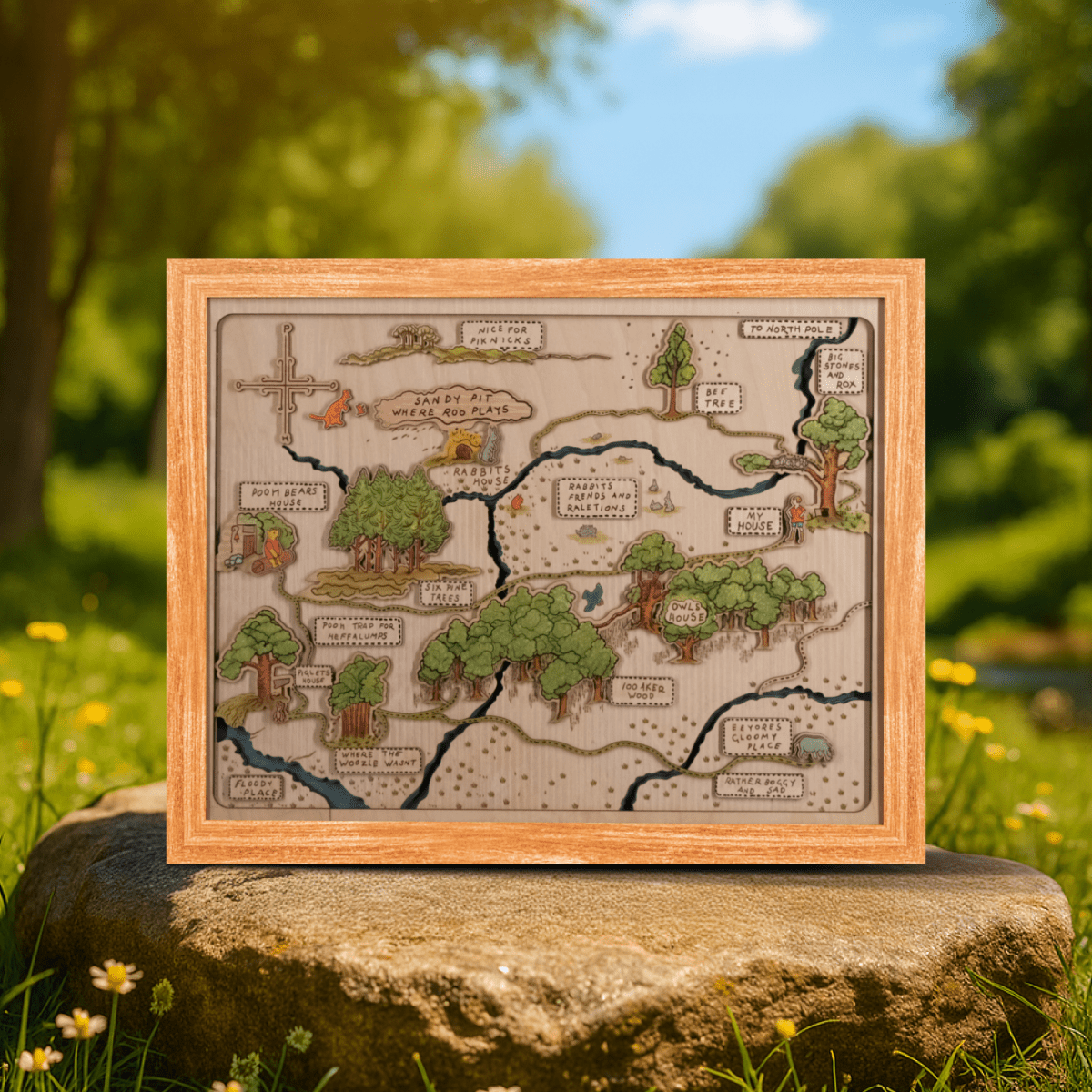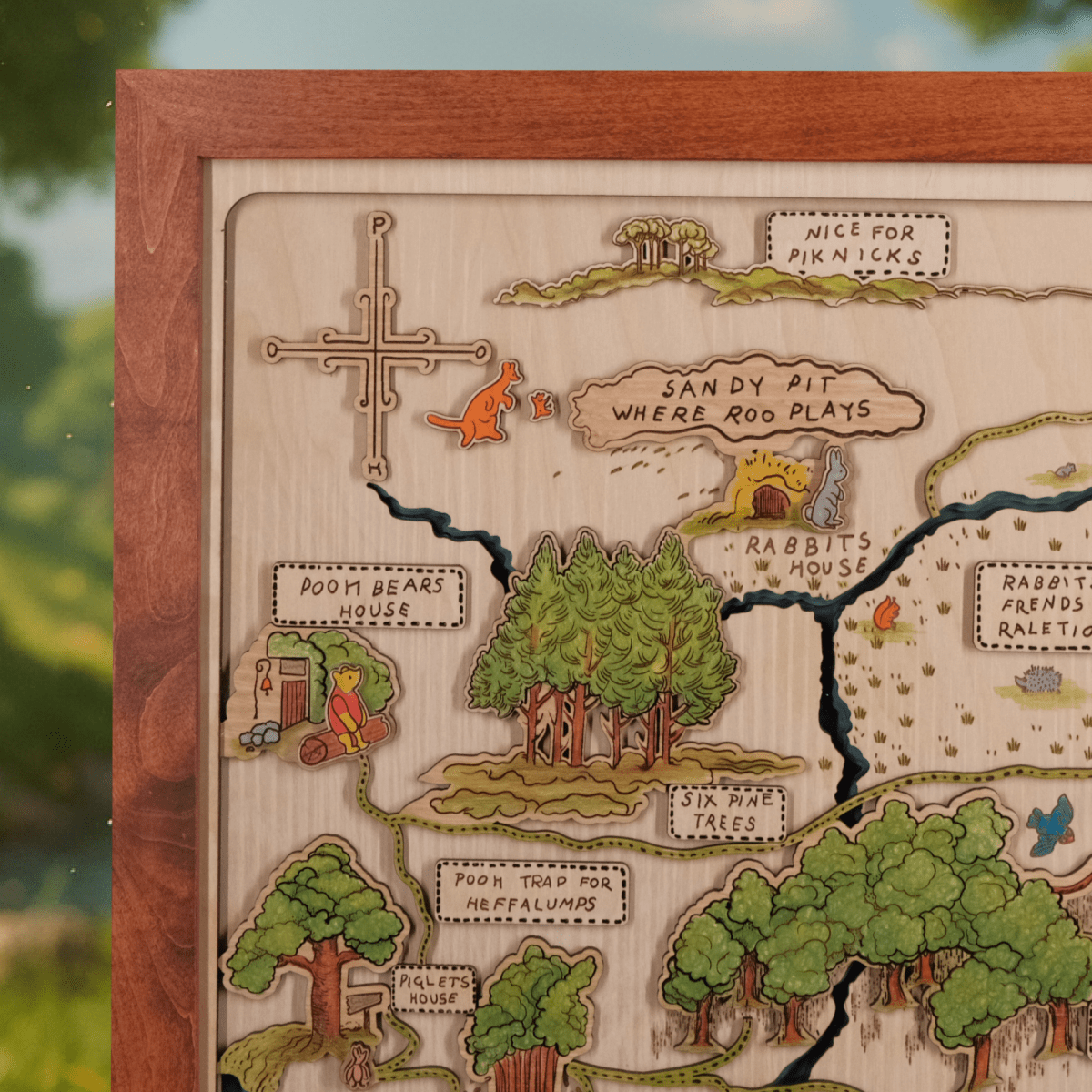 •For all WINNIE THE POOH fans. •This map is made of natural wood by hand and laser cutting. • The map isvery detailed, there you can find the places of all the adventures of our favorite characters.