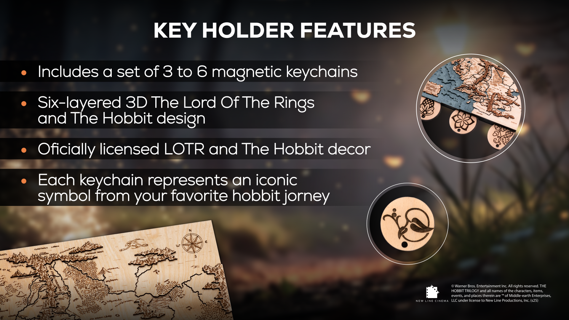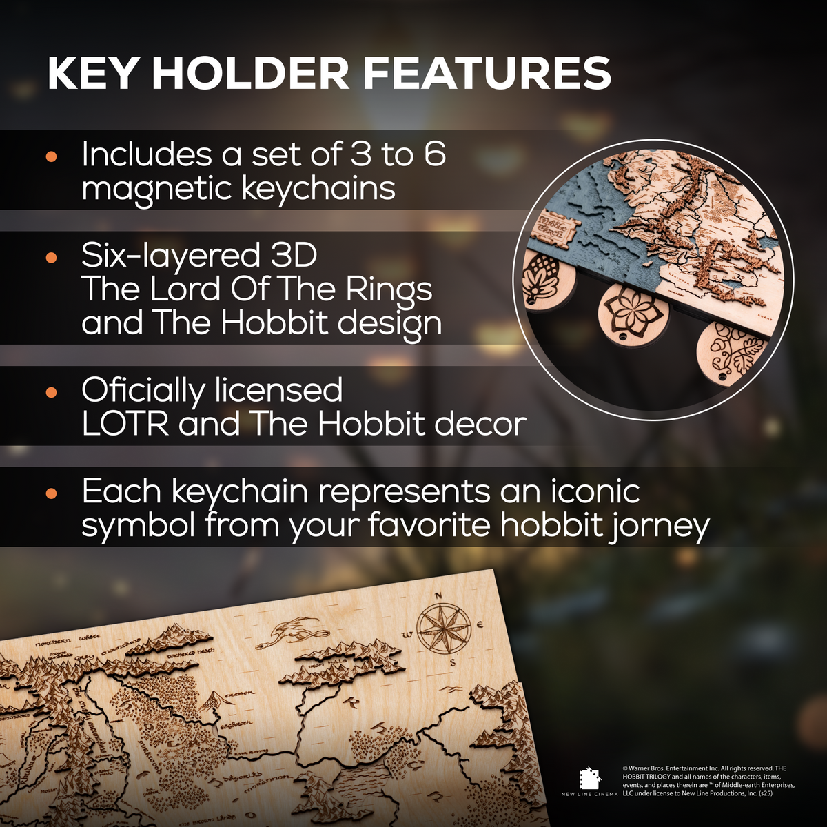 - Each Middle Earth key holder comes with a set of magnetic keychains with different designs.
