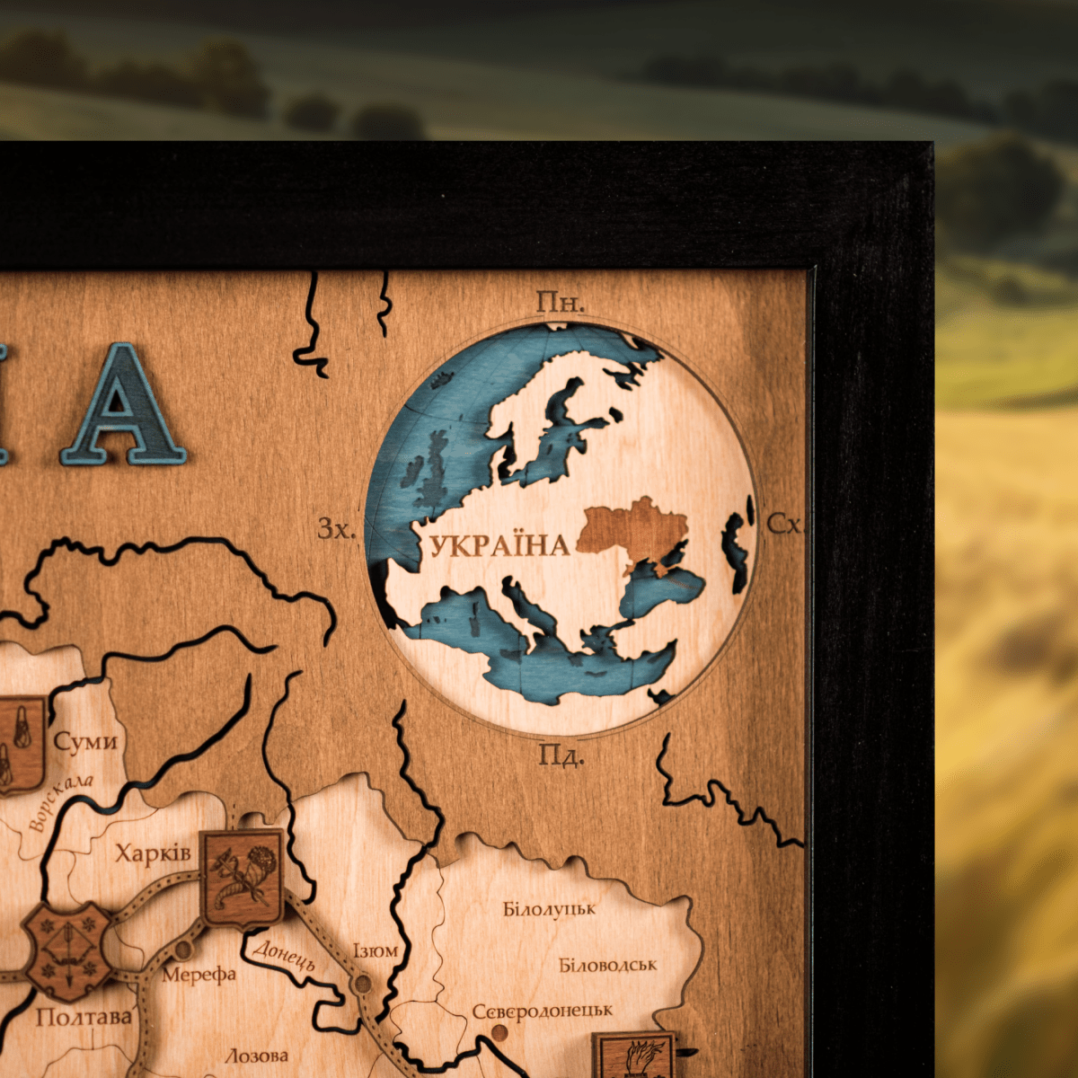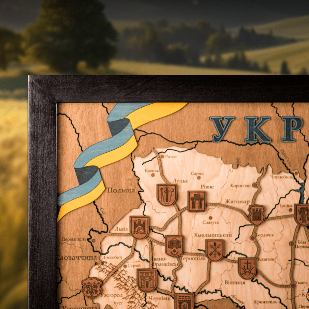 Ukraine 3D woodmap reflects the diversity and cultural heritage of this country. From the Carpathian Mountains to the Black Sea, it will allow you to discover the vastness and diversity of Ukraine's lands, creating an emotional connection with its culture, people and history. Buying the map is a great way to support Ukraine, as 25% of the sale of each map of Ukraine is donated to charity foundations.