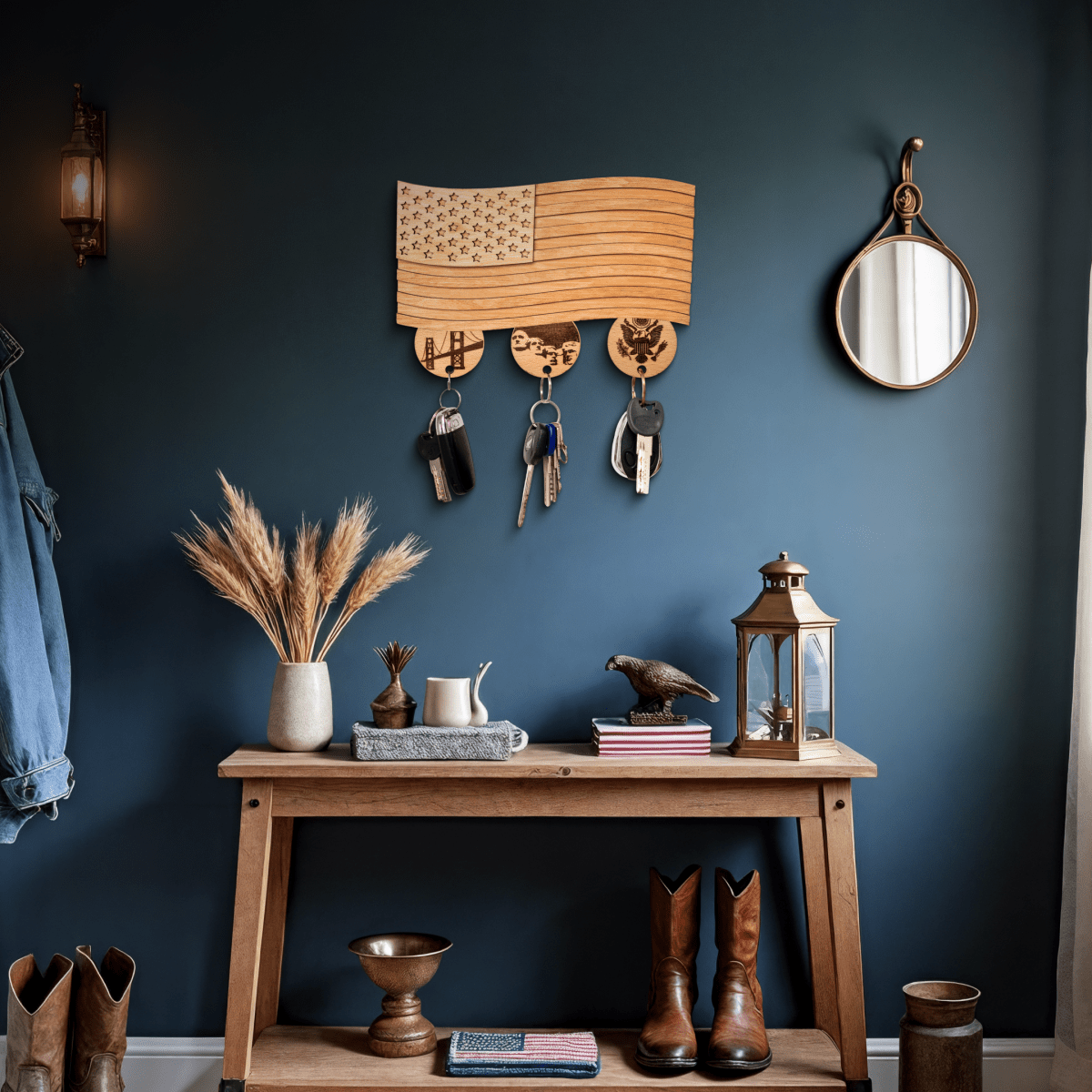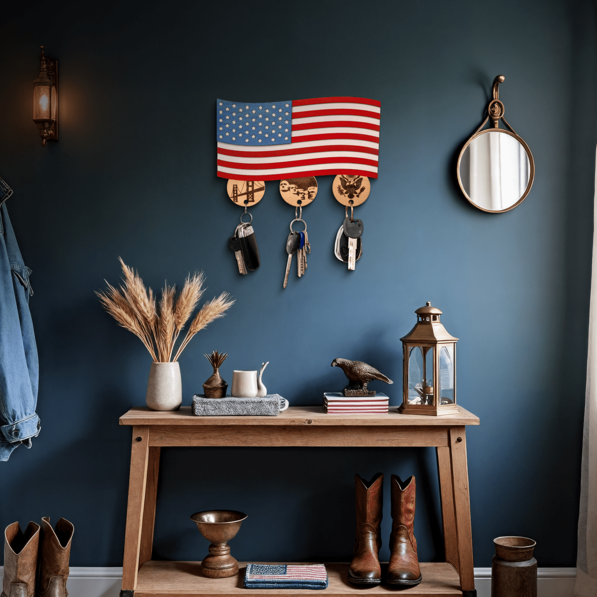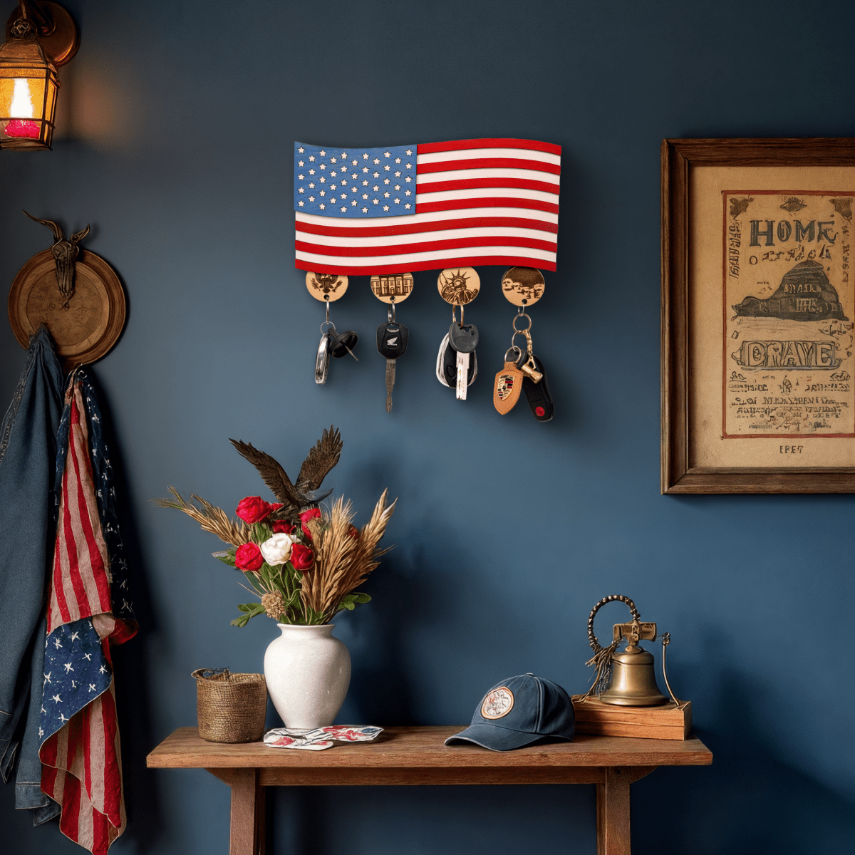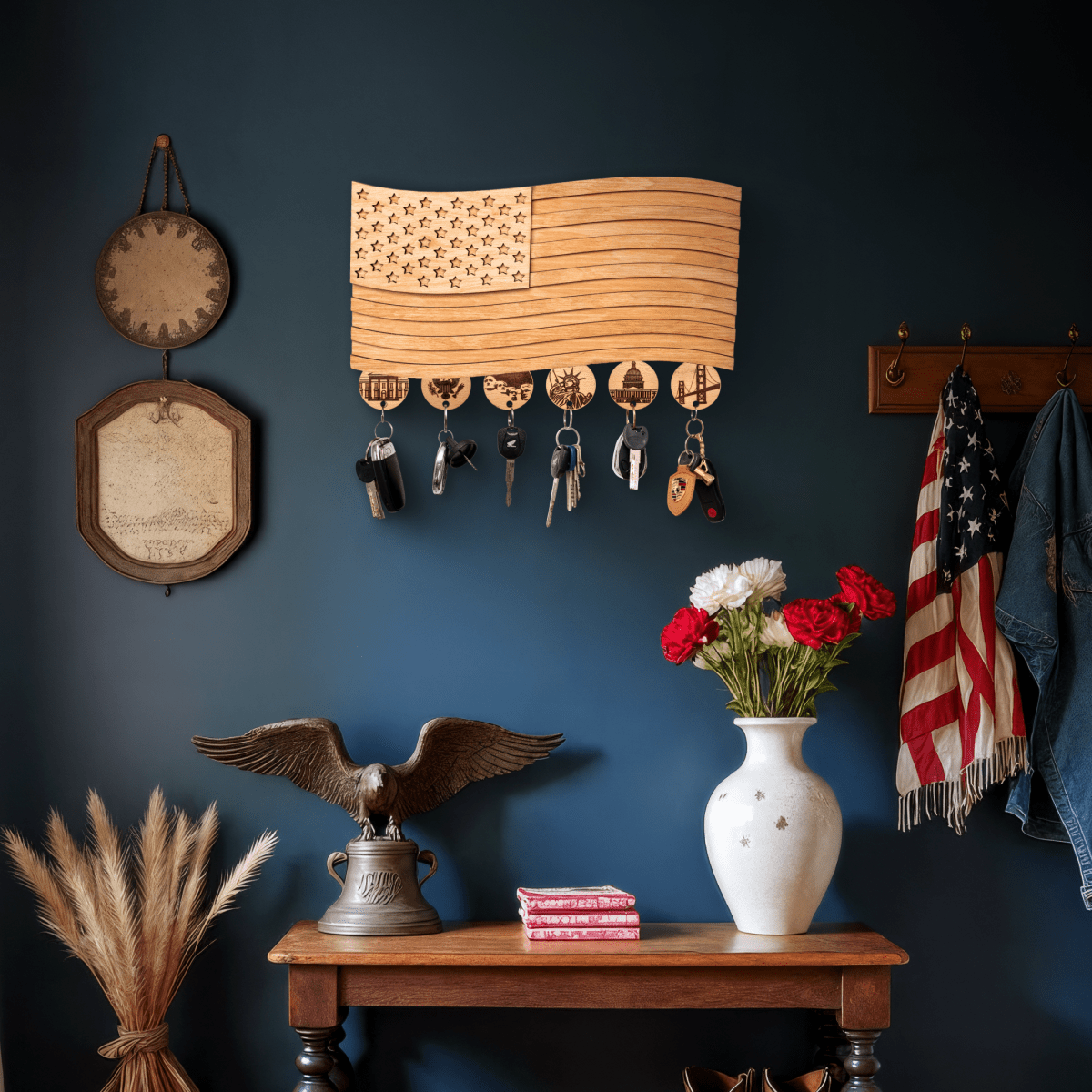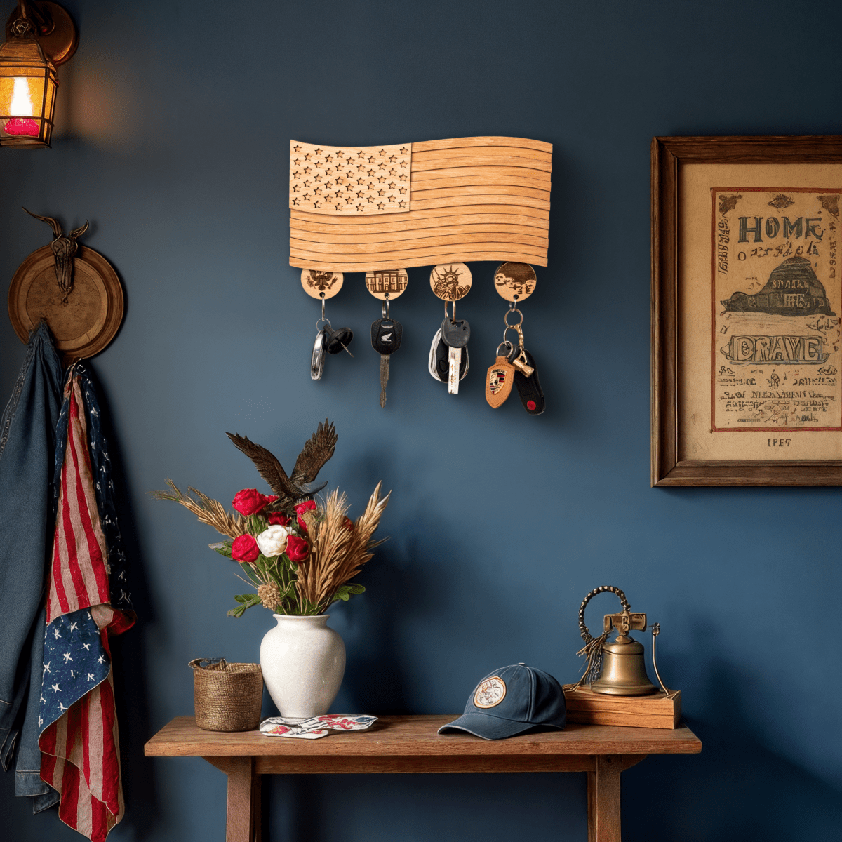 • The wooden American flag key holder is very detailed