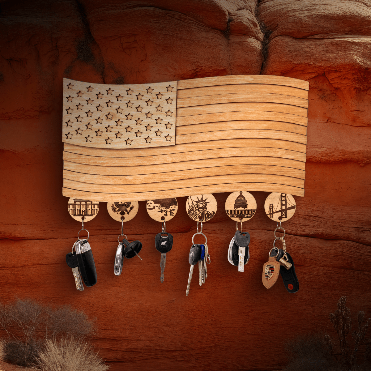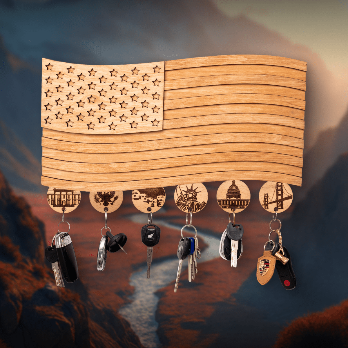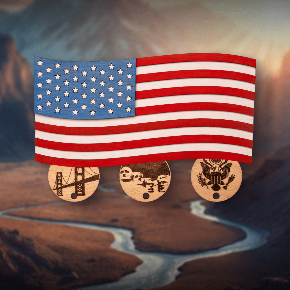 AMERICAN FLAG 3D WOOD KEY HOLDER - ZeWood