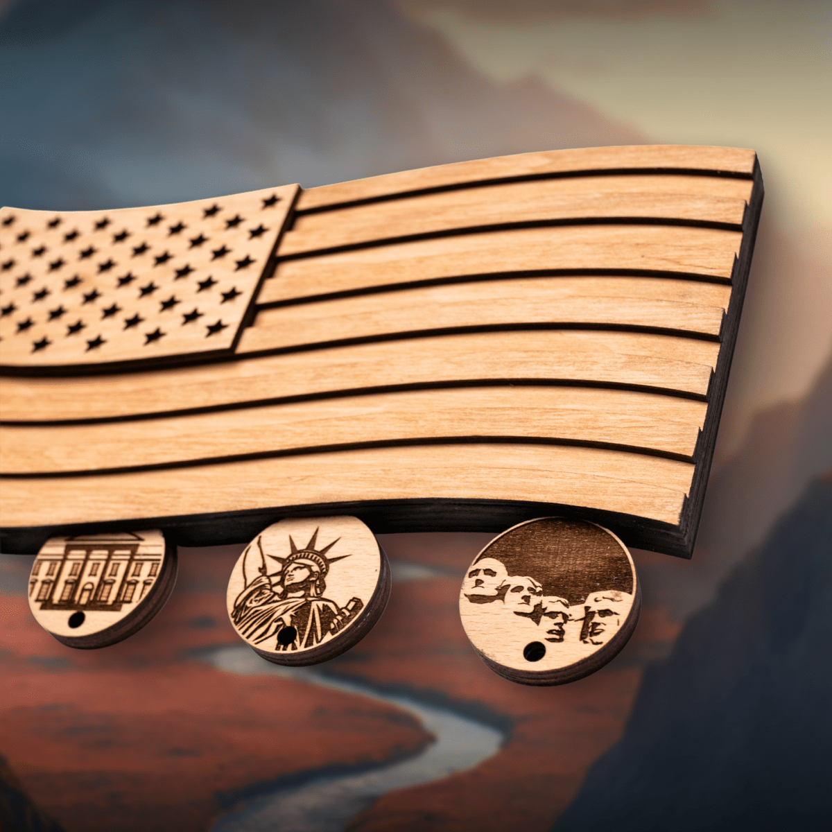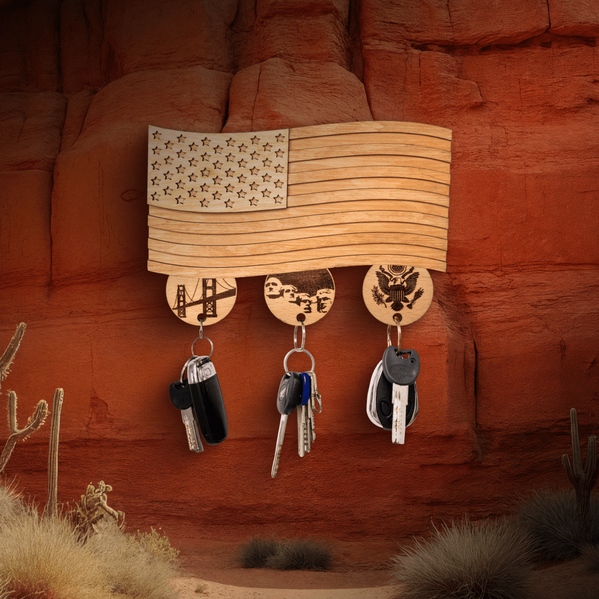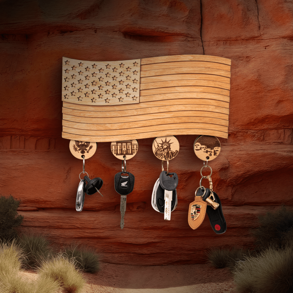 AMERICAN FLAG 3D WOOD KEY HOLDER - ZeWood