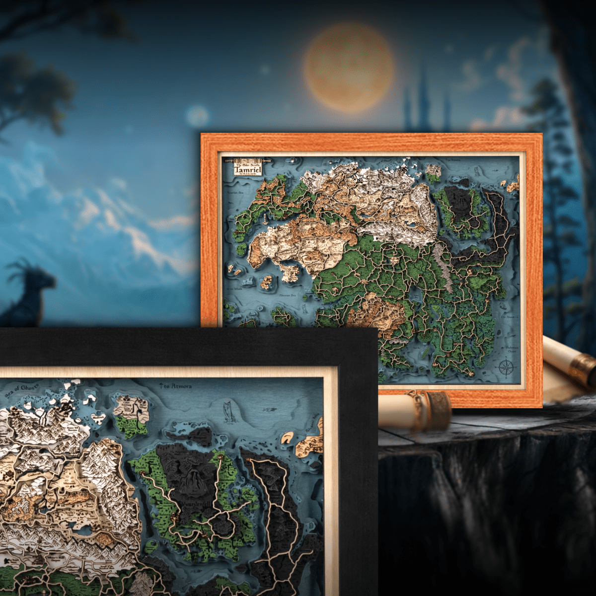 Fantasy World Maps | Gamer Gift & Game Room Decor – Wooden 3D Fan Art