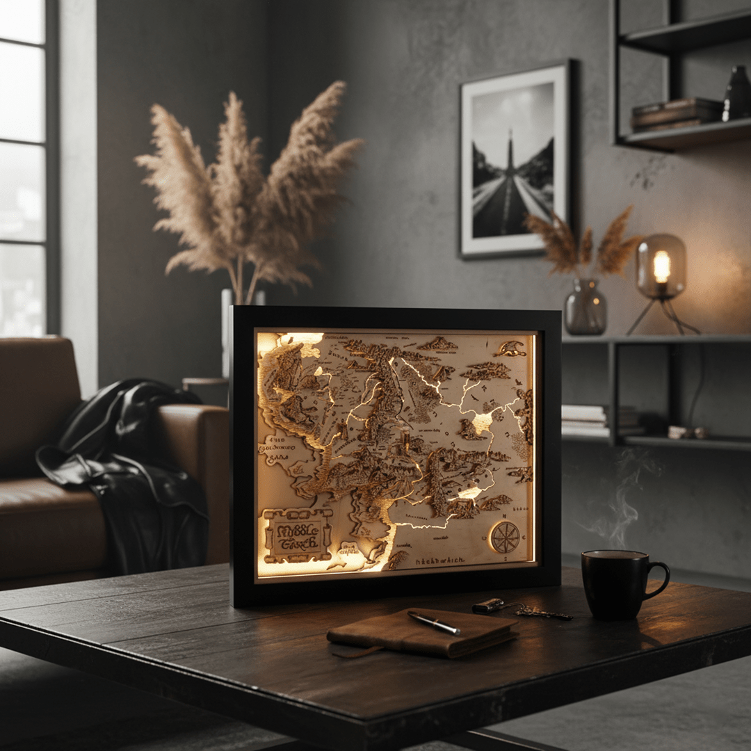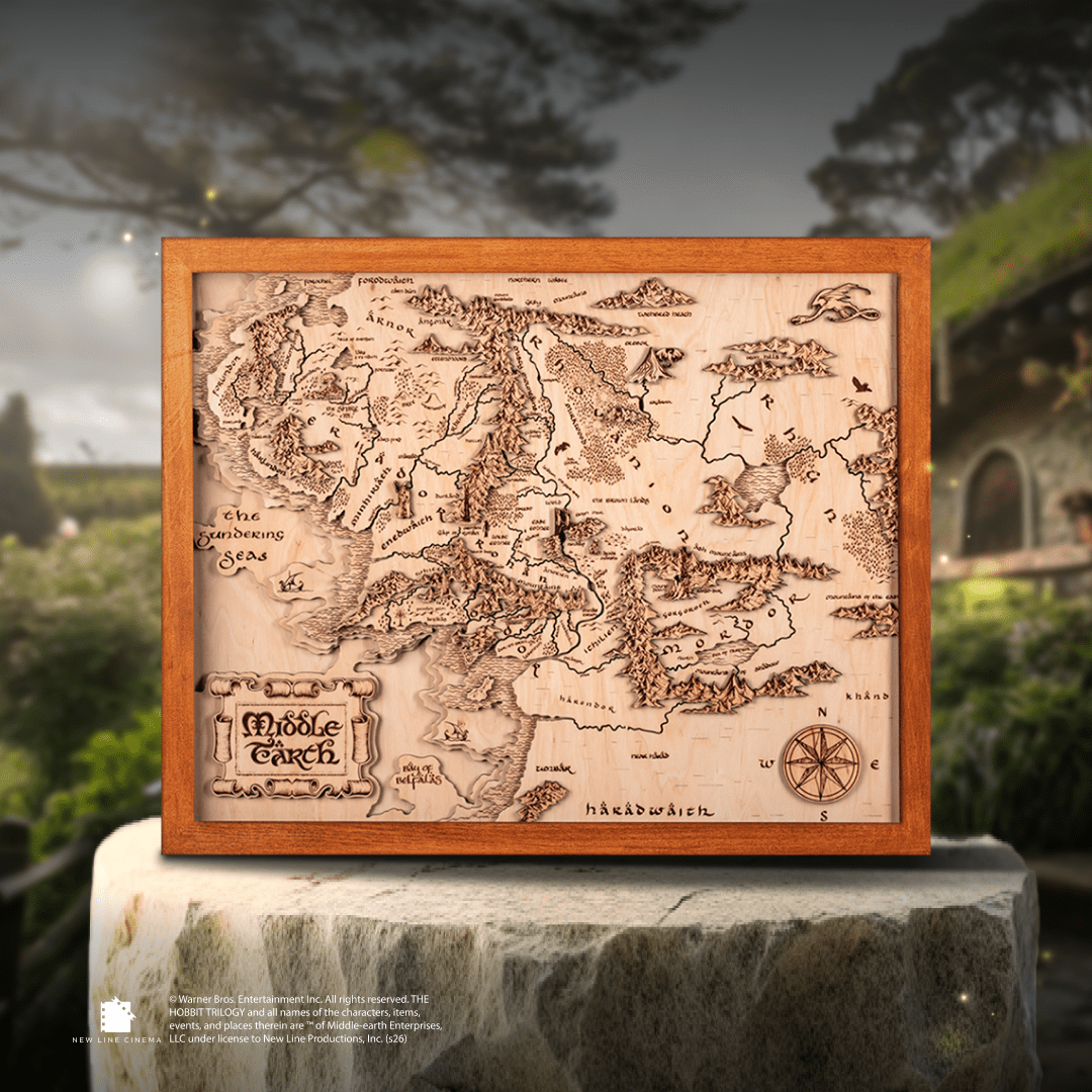 Middle Earth™ 3D Wood Map Natural Edition, inspired by The Lord Of The Rings and The Hobbit. Dive deep into the legendary adventures of Frodo, Aragorn, Gandalf, and more. This enchanting map not only elevates your home's ambiance but places you right in the heart of the epic tales. Limited stock - grab yours now and be part of the adventure!